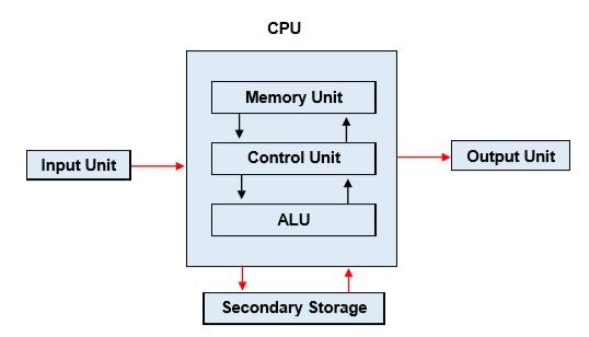 2. ALU इसका पूरा नाम Arithmetic Logical Unit है। यह Computer की प्रमुख Unit होती है। इसके द्वारा Computer में सभी Arithmetic एवं Logical कार्य किये जाते हैं। यह Processor के अन्दर होती है।