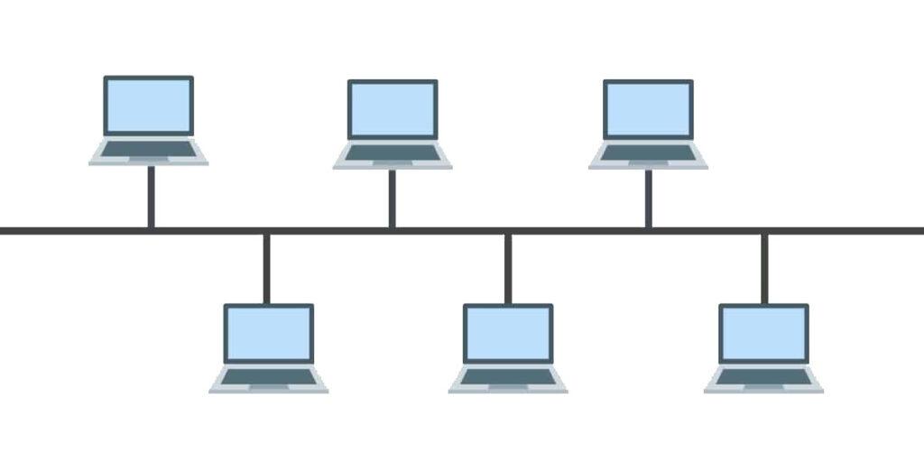 1. Bus Topology- Bus Topology में सभी Node एक Single Cable से